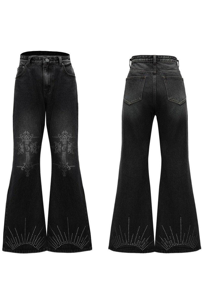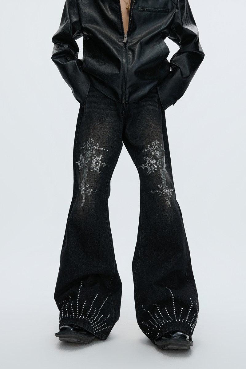 Washed Rhinestone Flare Jeans