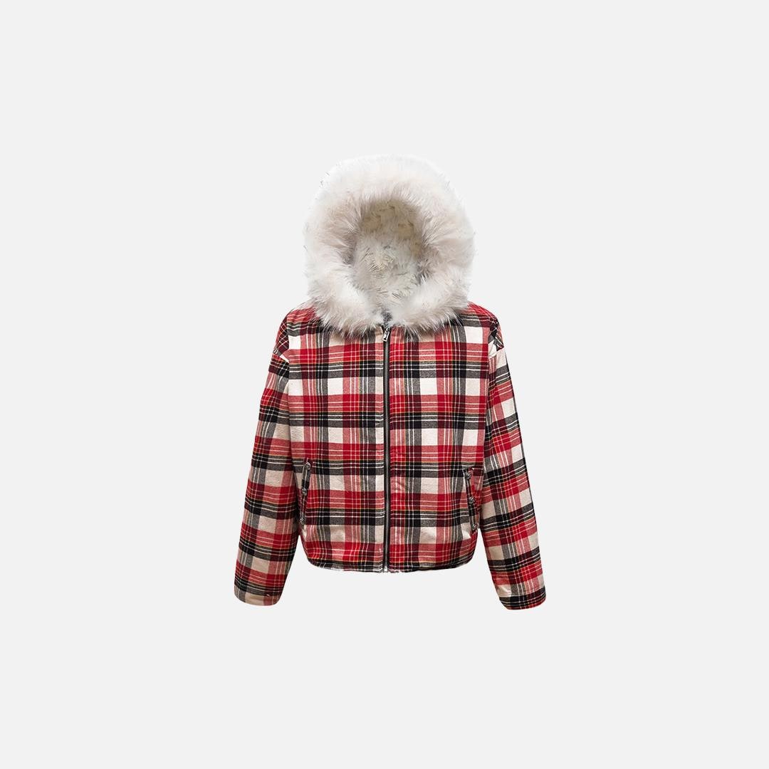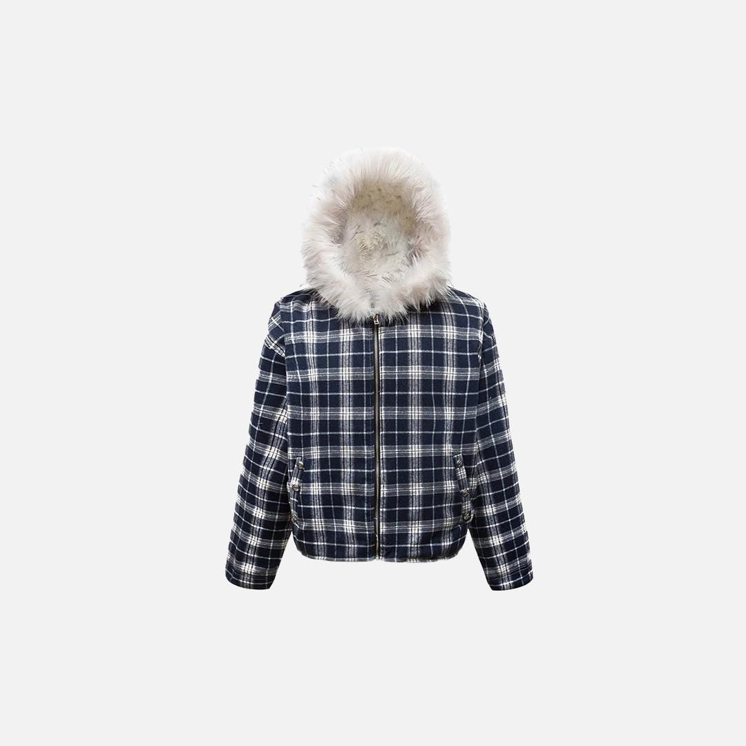 Winter Flexible Plaid Fox Fur Collar Retro Jacket